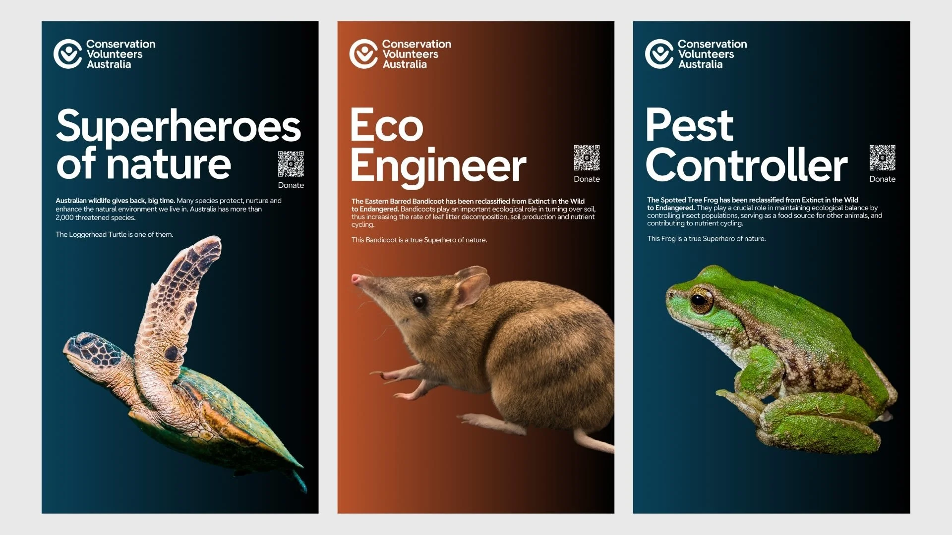 To stimulate pride and empathy for these creatures, the campaign features four endangered superheroes of the natural world. Whilst each animal has its own unique role in supporting the ecosystem, from eliminating pests to assisting in seed dispersal and plant regeneration, they also share the same threat of extinction due to a lack of food, bushfires, and other effects of climate change.